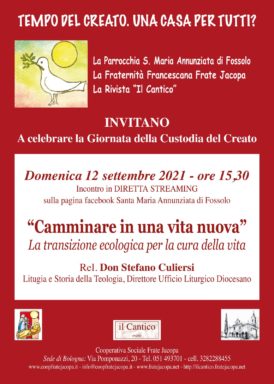 12 settembre 2021: Incontro del Ciclo “Il tempo del creato. Una casa per tutti? promosso da FFFJ con la Parrocchia S. Maria Annunziata di Fossolo. Rel don S. Culiersi