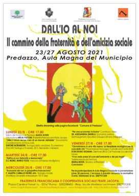 La Frat. Franc. Frate Jacopa con il Comune di Predazzo organizza il Convegno:Dall’io al noi.Il cammino della fraternità e amicizia sociale (23-27/8/2021)